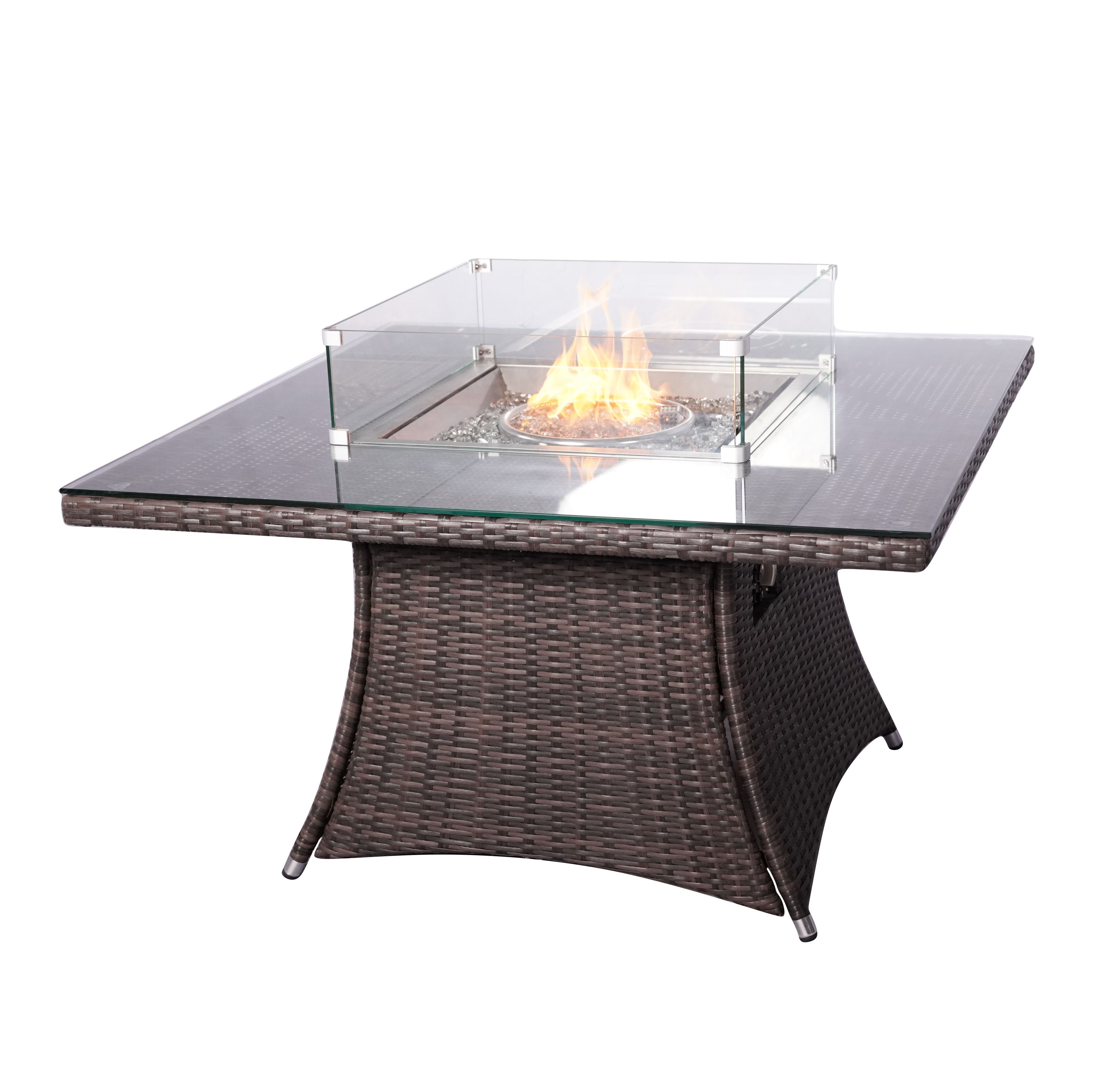 2. The set is not only a beautiful and focal central piece for your garden but is also very practical. The table has a heat adjustable stainless steel gas fire-pit. The flames emerge from the crushed glass central feature and will keep you warm and comfortable long after the sun goes down; enabling you to continue relaxing long into the night.