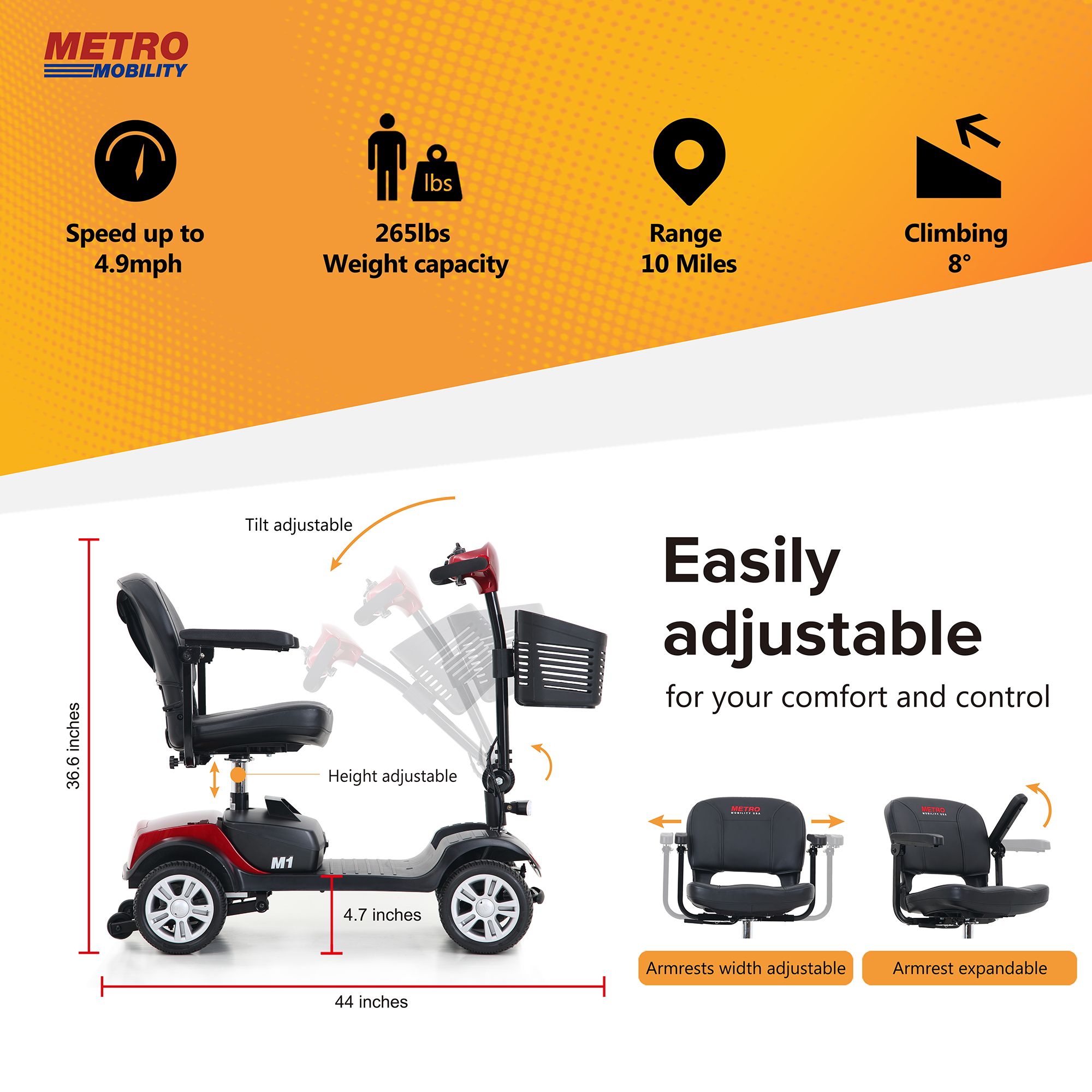 4.[Easy to Operate & Easy Disassembly] - Equipped with automatic braking mechanism, the mobility scooter will stop immediately if let go of handlebars. The machine uses sturdy one-piece body frame, which not only offers better strength, but also makes the mobility scooter super easy to assemble.