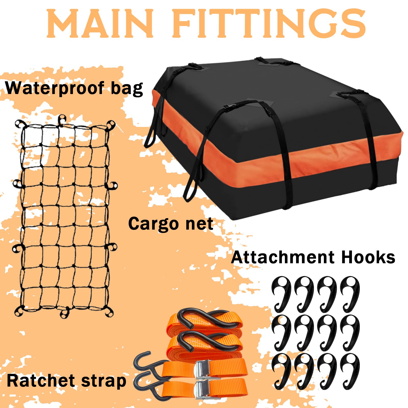 Home > 64"x39"x6"/51"x36"x5" Roof Rack,Heavy Duty Rooftop Cargo Carrier,Roof Basket with Waterproof Bag,Elastic Net with Attachment Hooks,Ratchet Strap