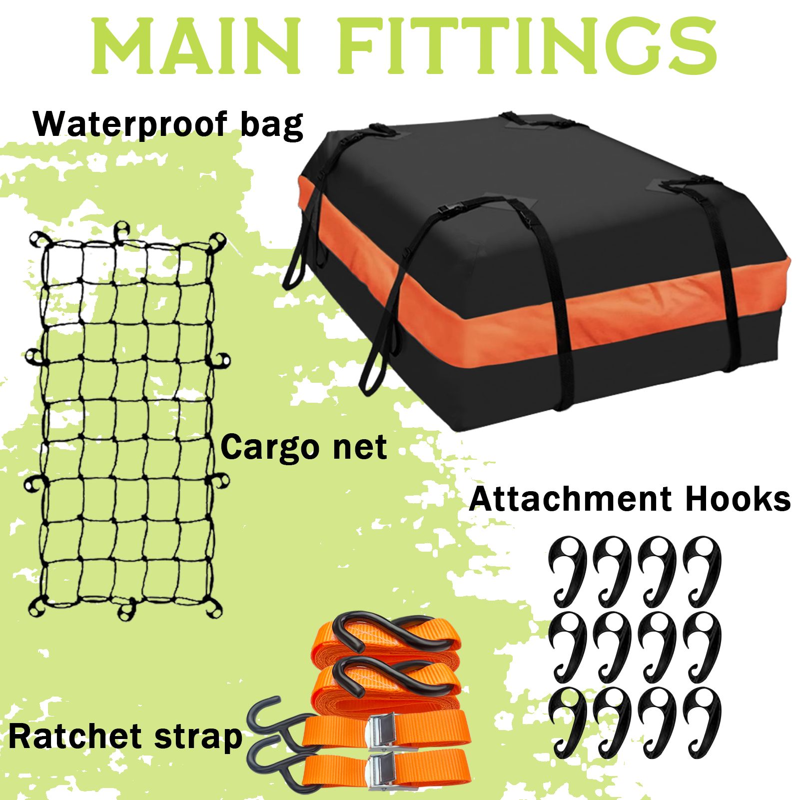 Home > 64"x39"x6"/51"x36"x5" Roof Rack,Heavy Duty Rooftop Cargo Carrier,Roof Basket with Waterproof Bag,Elastic Net with Attachment Hooks,Ratchet Strap