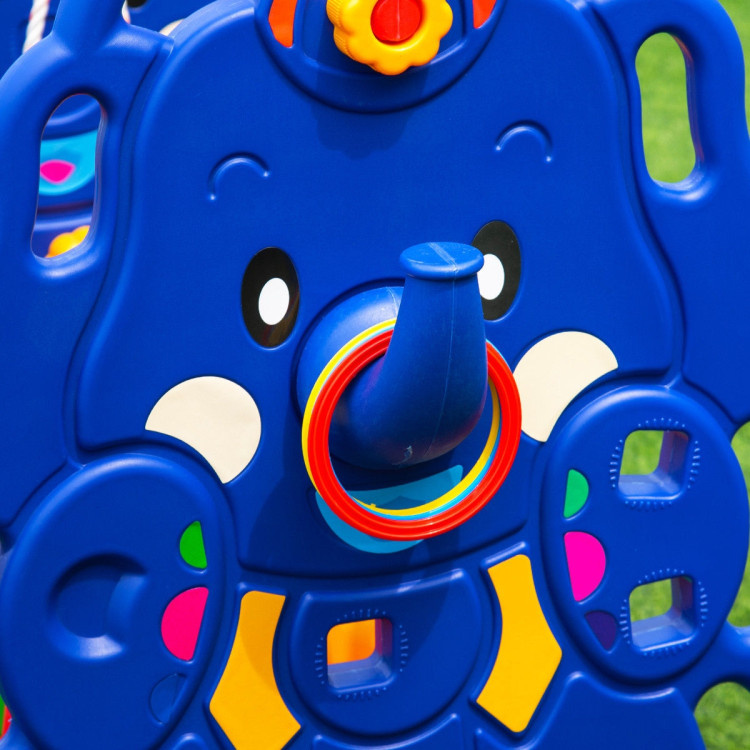 Perfect for toddlers: The bright and colorful 3-in-1 climber features a smooth slide; a sturdy swing and a basketball hoop; which is intended for family and domestic outdoor use. All activity elements are appropriately sized for toddlersLearn to toss: There are some ringers on the nose of the elephant and there is also a basketball hoop on the other side of the climber. Kids can learn to toss with the process of having fun in playing basketball and throwing the ringersSmooth slide: Toddlers can climb the stairs and zip down the slide. The climber is easy for little ones to climb up to the slide landing and the gentle slope slide is designed for soft landingsSafe swing: The swing can maximum hold 66lbs with strong hangers; and with a secure hand; your kids will keep safe during playtimeEasy to clean and durable: Durable poly construction wipes clean easily and lasts for years