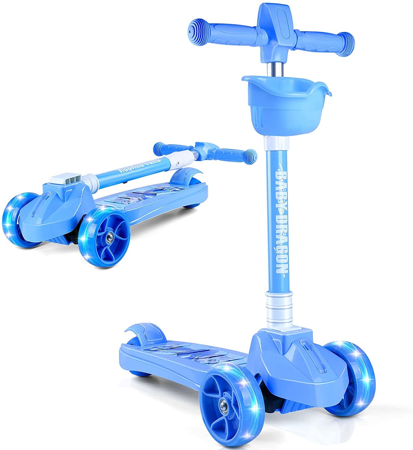 The perfect gift: When a child rides a scooter; the wheels will automatically light up. This toddler scooter is equipped with a detachable small basket; you can put some candy or toys in the basket. This scooter is the best outdoor toy for children 3 4 5 6 7 8 9 10 11 12 years old.