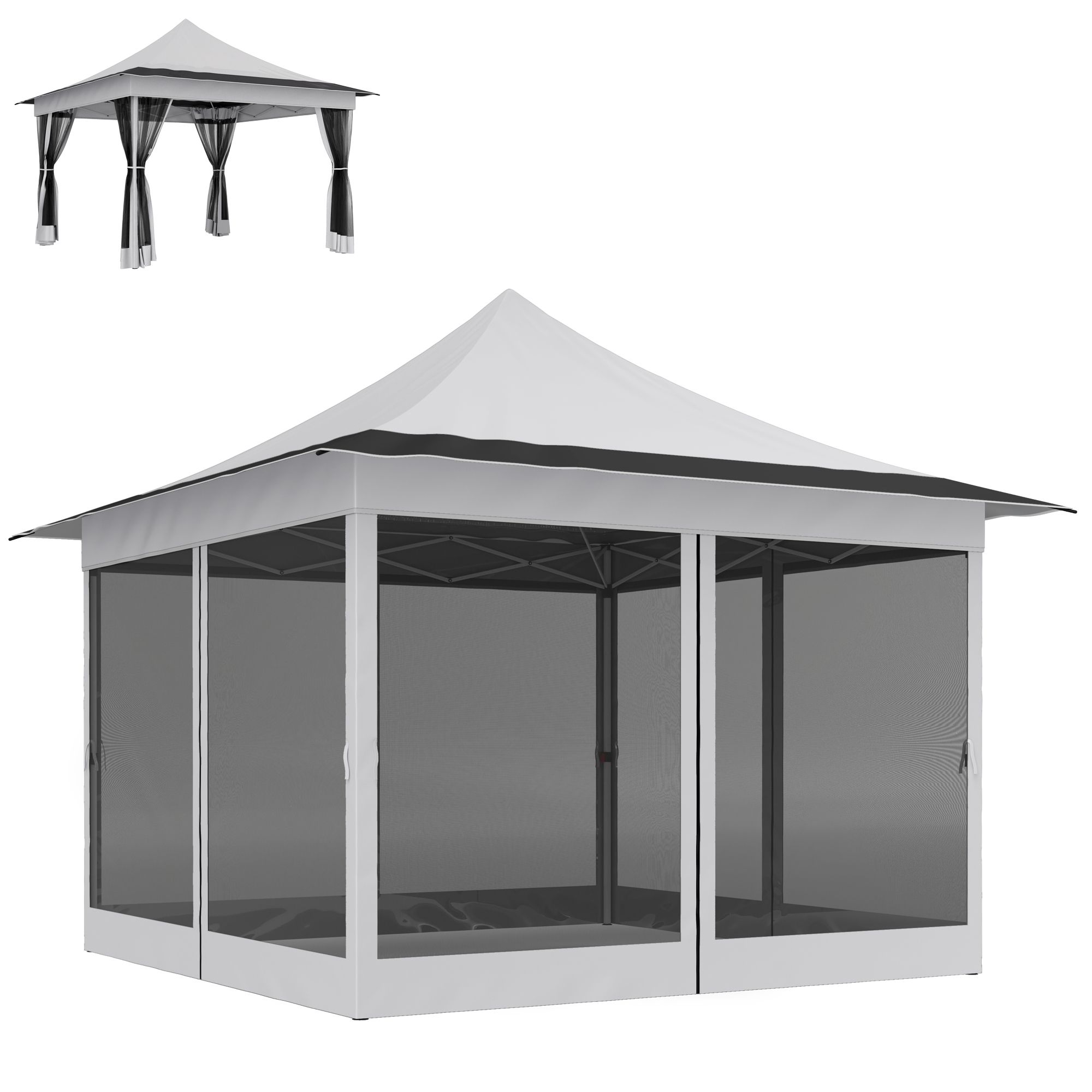 Outsunny 12' x 12' Canopy Tent with Mesh Netting, UPF50+ Pop Up Tent with Carry Bag for Garden, Patio, Light Gray