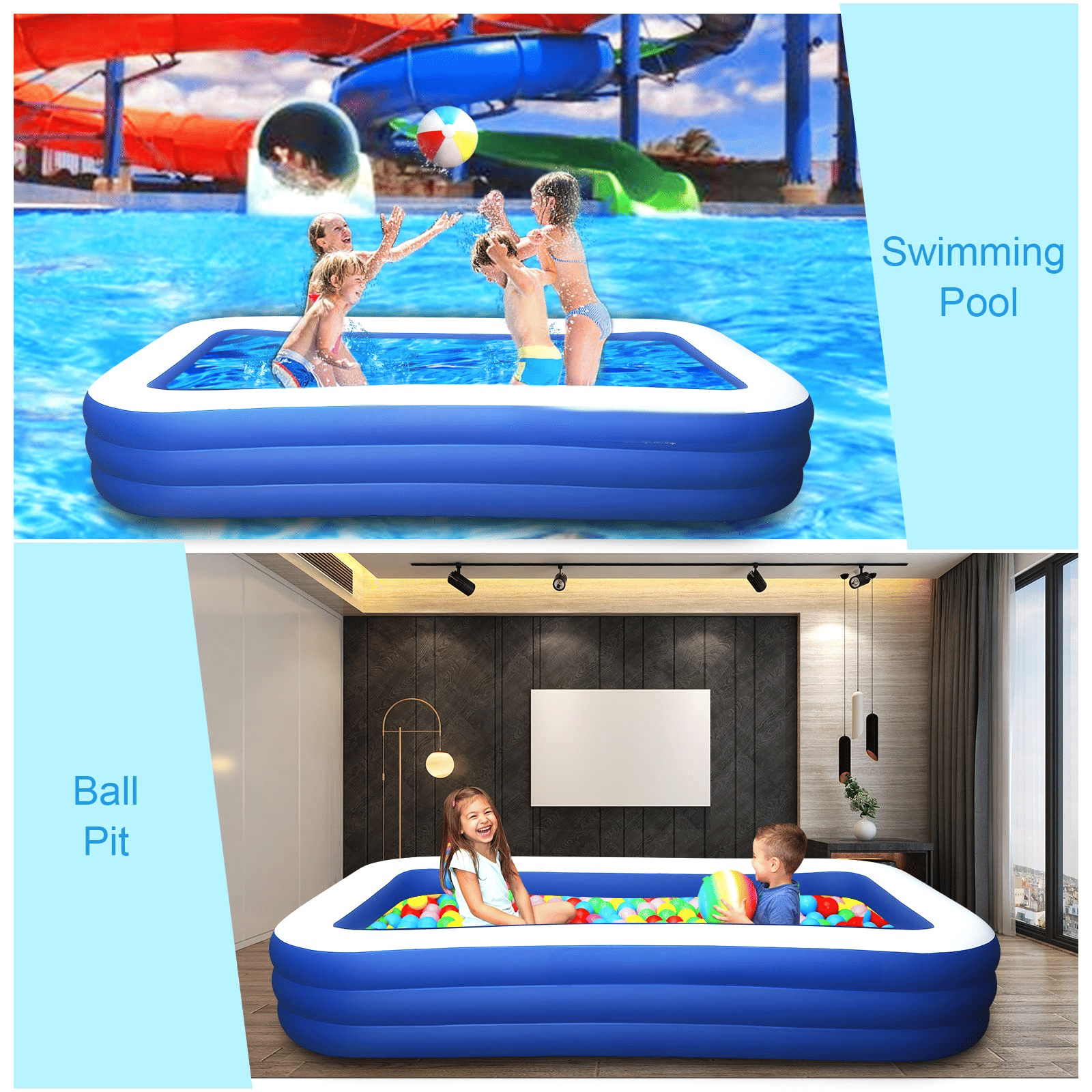 [Great Gift,Swimming Pool and Ball Pit]:inflatable pool is a great gift for your kids, families, pet dogs and friends. They could not only enjoy the hot summer day time with our inflatable pool in the backyard, but also it would be used as the ball pit indoor when the weather is cool.