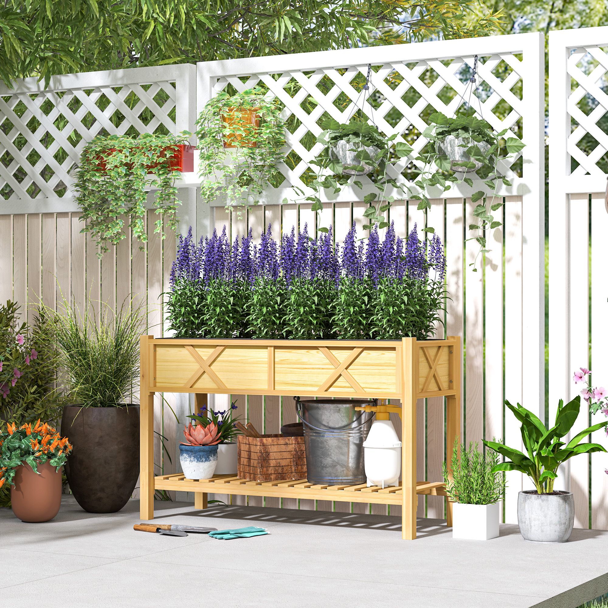 Home > Outsunny Raised Garden Bed, 47 x 22 x 31.5in Elevated Wood Planter Box with Storage Shelf, Drainage Holes and Liner, Natural
