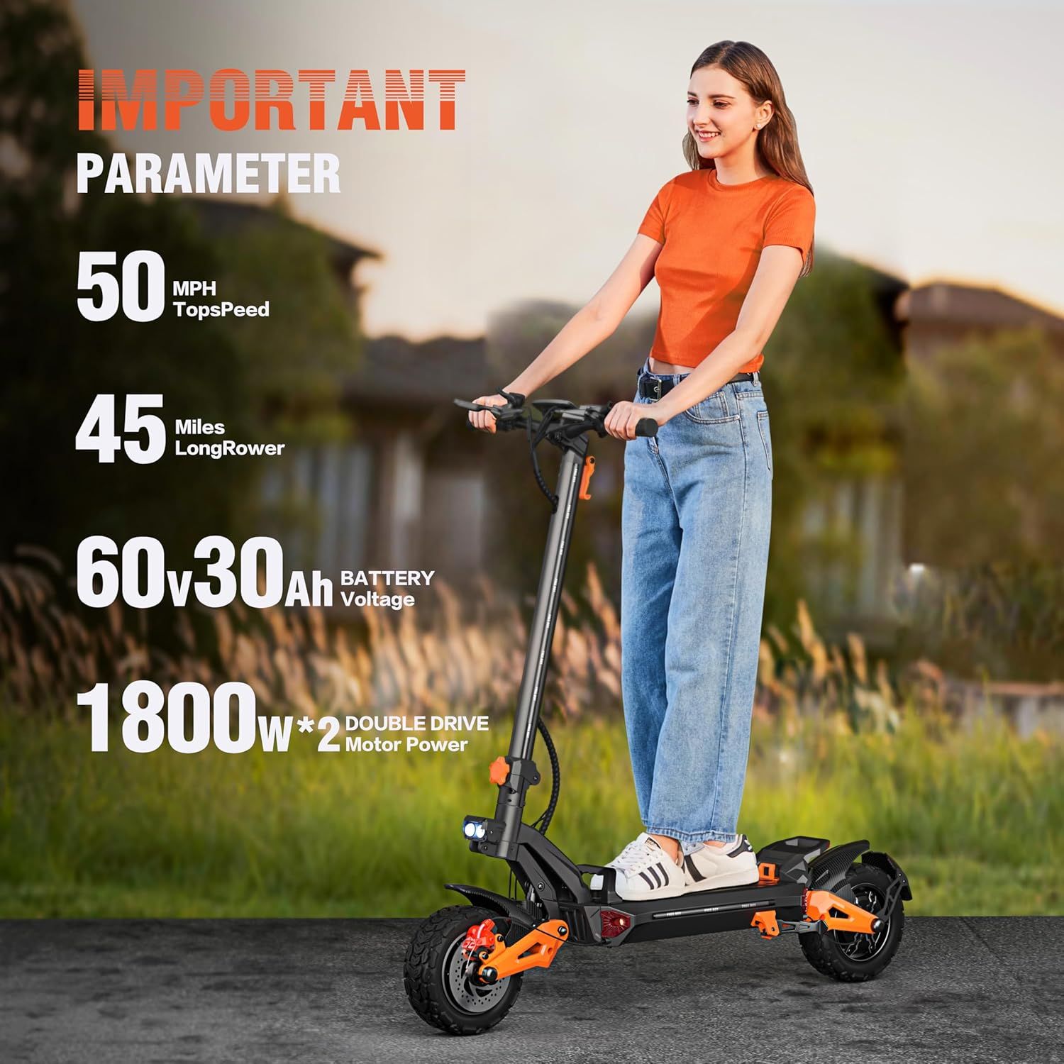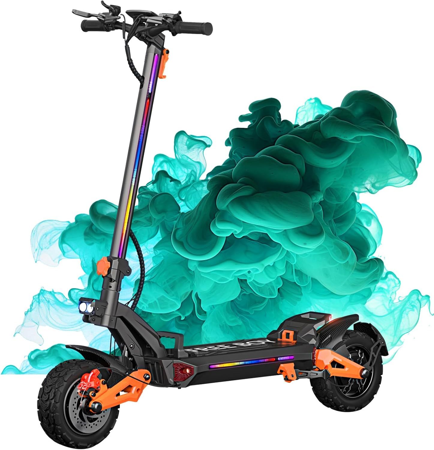 1.Electric Scooter at a Great Value - With a robust 3600w Motor allows for speed up to 50 mph, FREEBOY electric scooters boasts an impressive 45 miles cruising range. The high-powered 1800w dual motor and 11" off-road pneumatic tires can easily navigate 35° slopes. Designed to tackle various terrains, from city streets to dirt paths