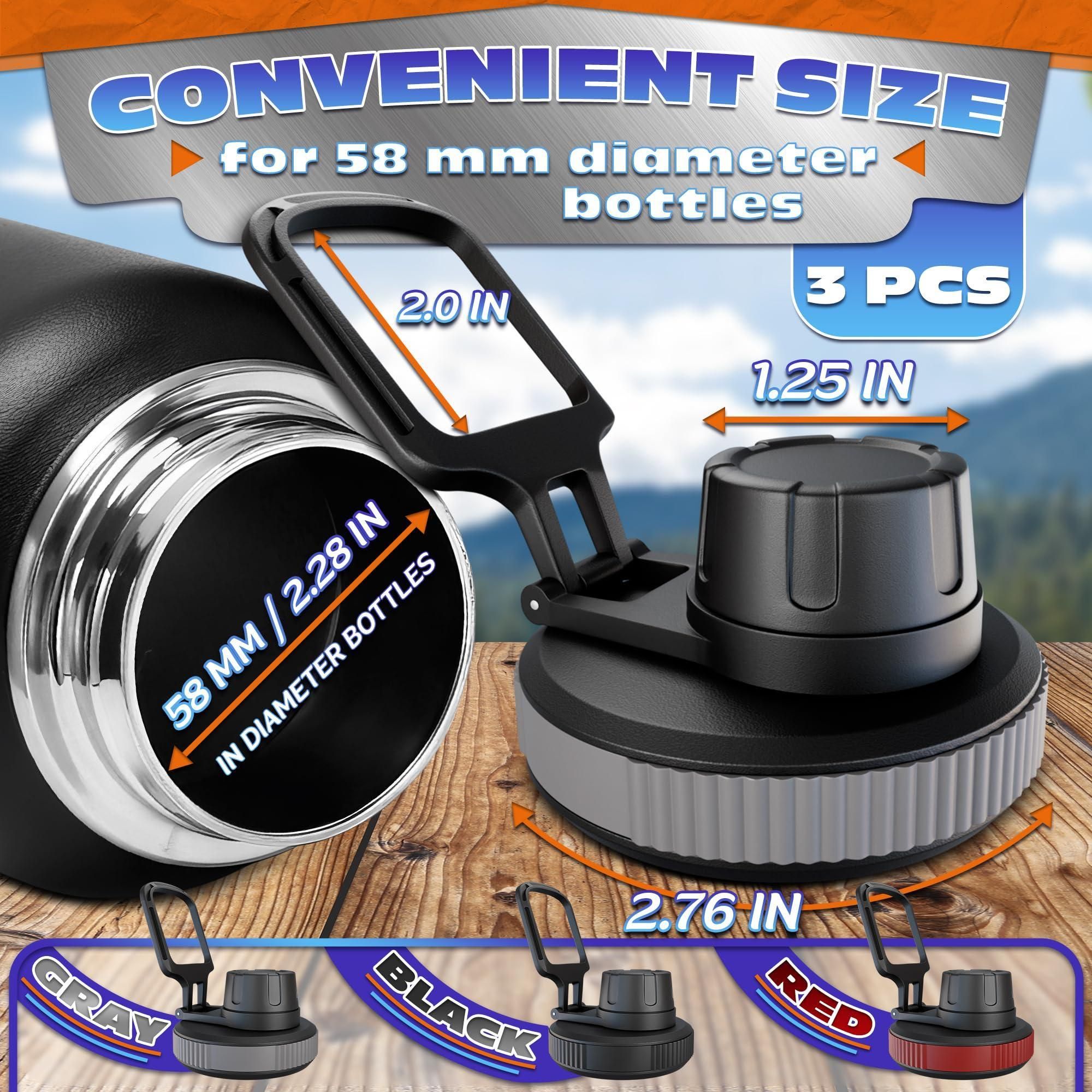1.Broad Compatibility of Wide Mouth Water Bottle Lid Replacement: Our replacement water bottle lid fits wide-mouth chug caps for water bottles in sizes 12 oz, 14 oz, 18 oz, 32 oz, 40 oz, and 64 oz