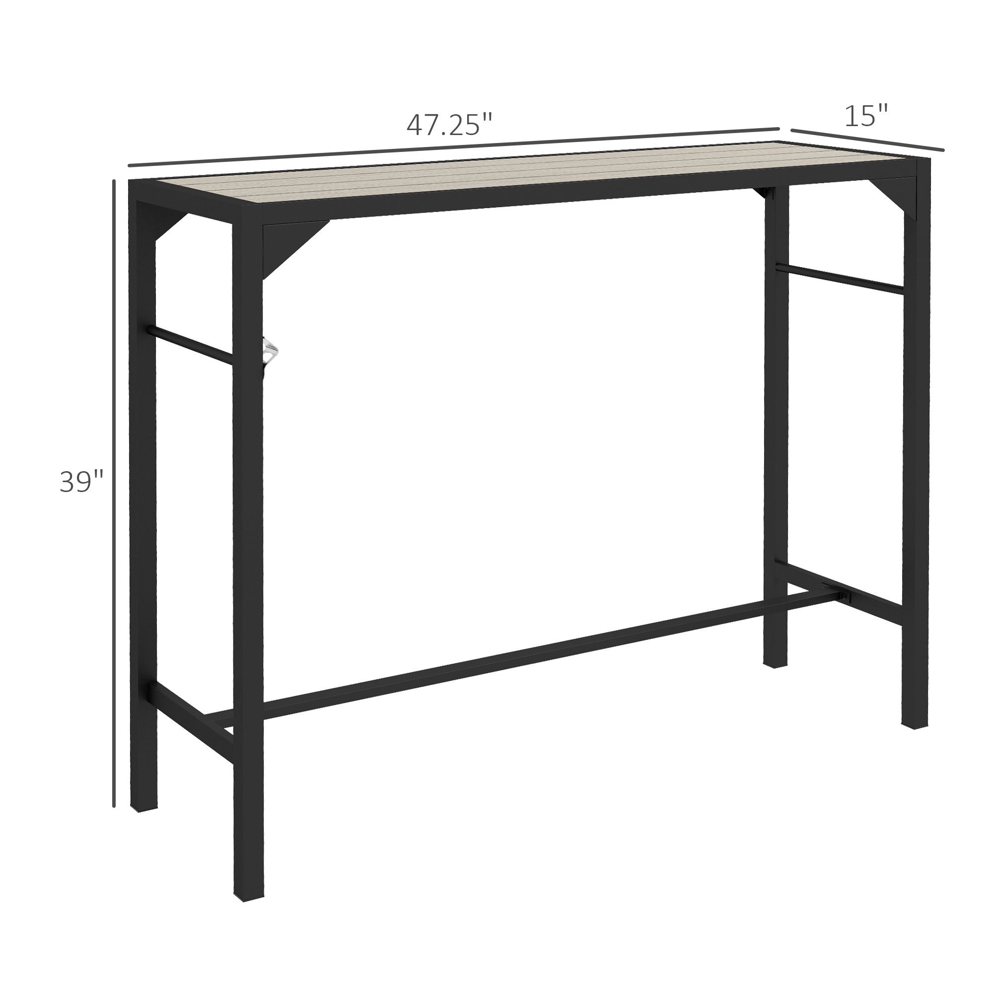 Outsunny Patio Bar Table: Bar Height with Built-In Bottle Opener, Wood Grain Plastic Top, 47.25" x 15" x 39", for Social Gatherings| Outsunny Patio Bar Table: Bar Height with Built-In Bottle Opener, Wood Grain Plastic Top, 47.25" x 15" x 39", for Social Gatherings| Outsunny Patio Bar Table: Bar Height with Built-In Bottle Opener, Wood Grain Plastic Top, 47.25" x 15" x 39", for Social Gatherings|