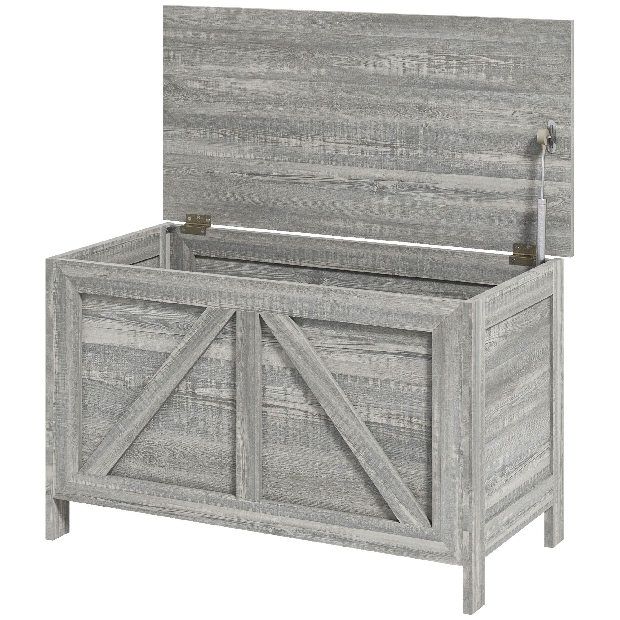 HOMCOM Storage Chest, Farmhouse Lift Top Box Organizer with Safety Hinge, for Bedroom, Entryway, Living Room, Gray Wood Grain HOMCOM Storage Chest, Farmhouse Lift Top Box Organizer with Safety Hinge, for Bedroom, Entryway, Living Room, Gray Wood Grain HOMCOM Storage Chest, Farmhouse Lift Top Box Organizer with Safety Hinge, for Bedroom, Entryway, Living Room, Gray Wood Grain